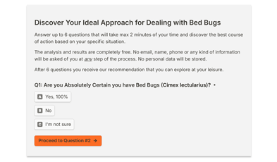Answer up to 6 questions and discover the best bed bug treatment for you.