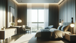 AI-generated image for: a realistic modern bedroom, cinematic
